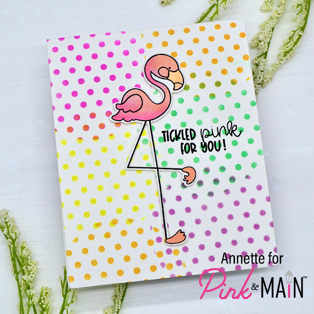 Pink & Main blog HERE and I am getting crafty with Pink & Main Stand Tall stamp and coordinating die set and Circle Spotlights 1 stencil. We all love a cute Flamingo set.... right?